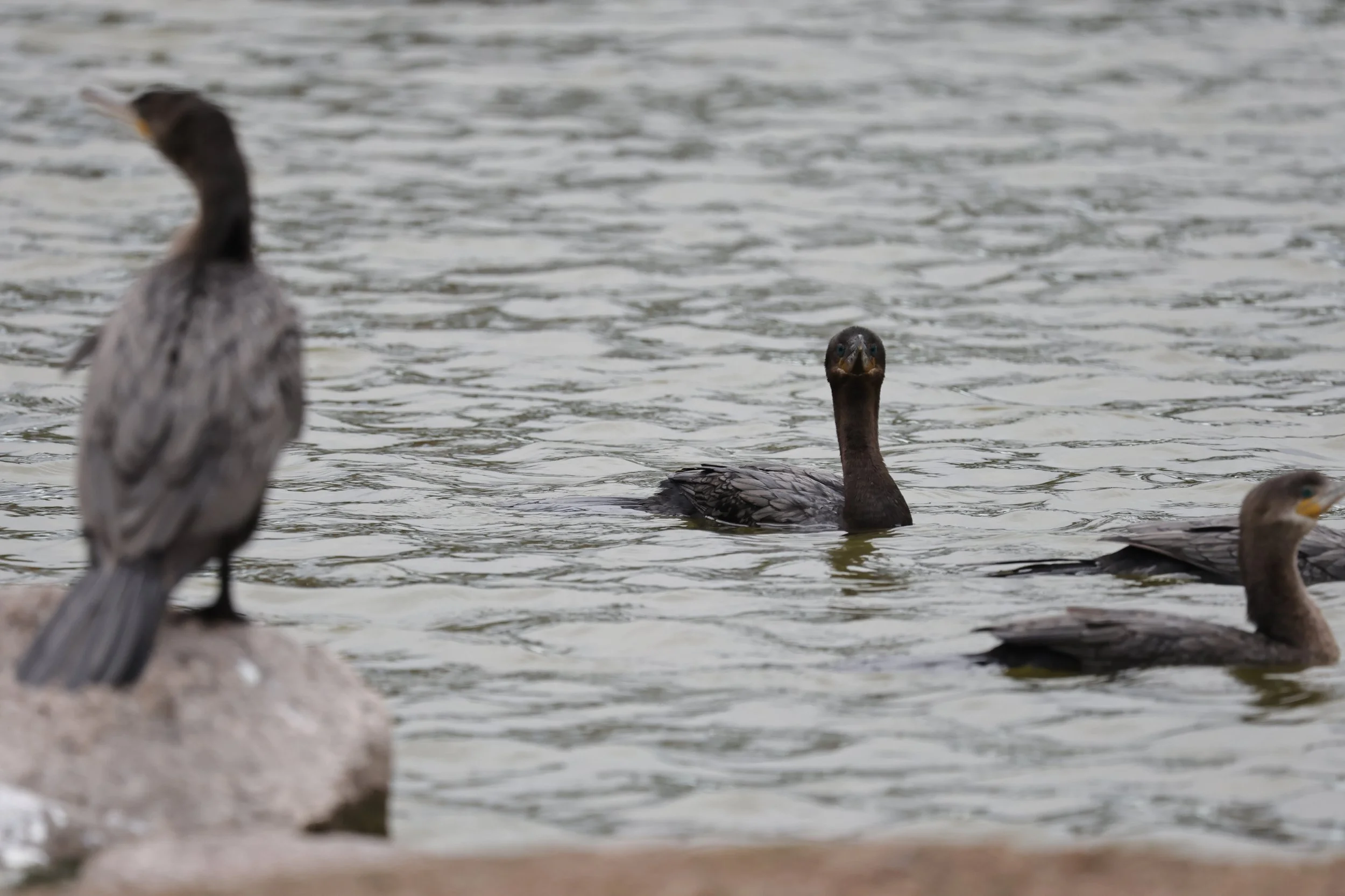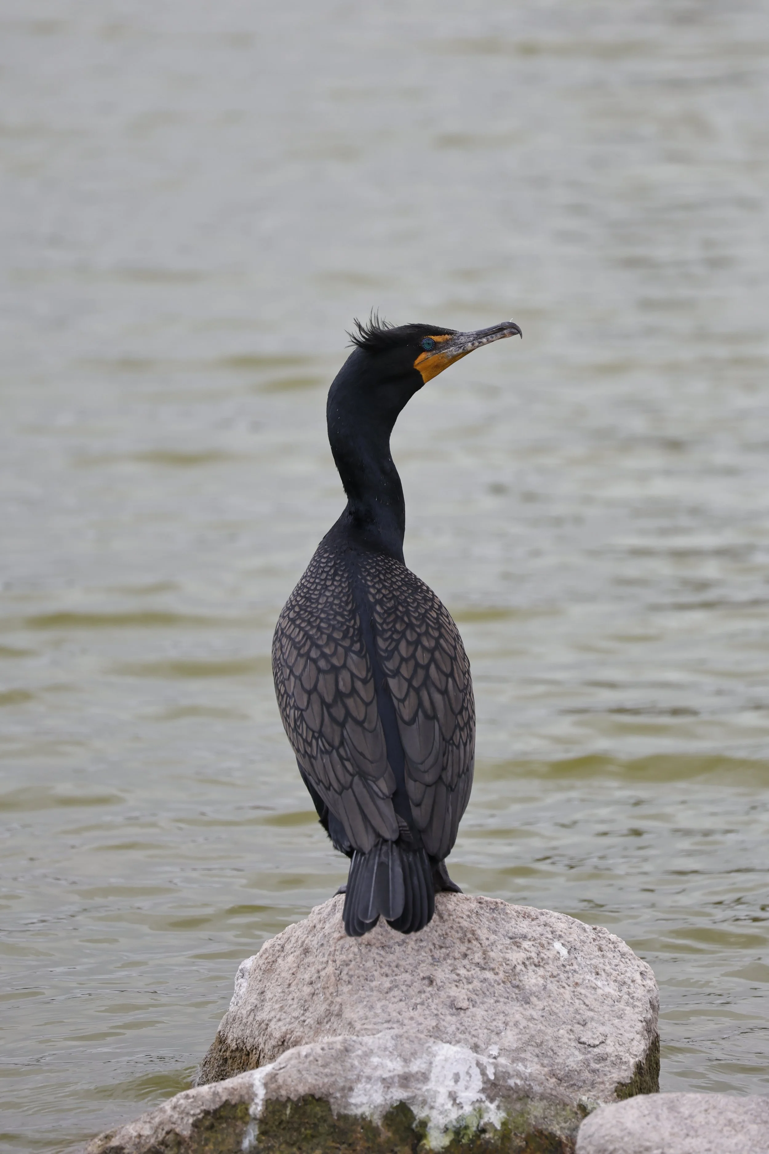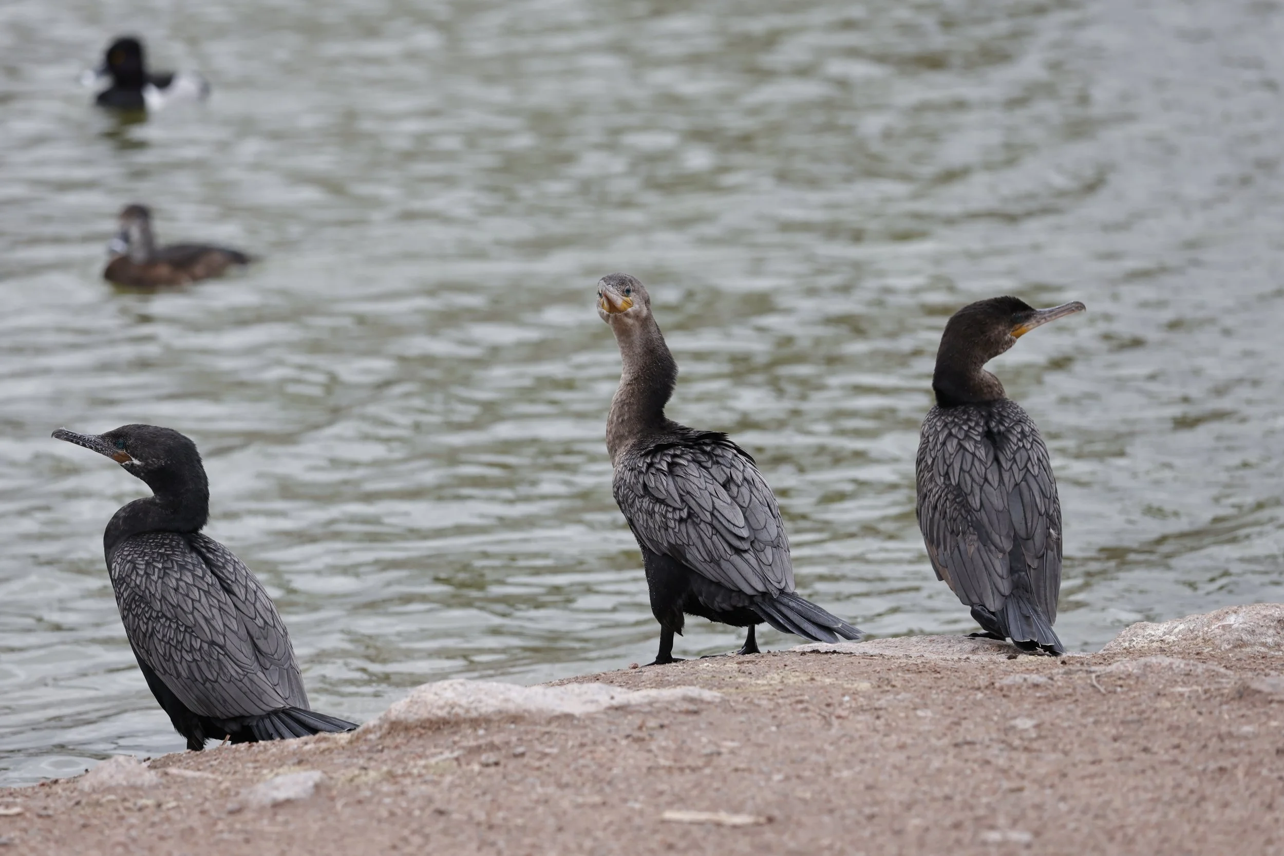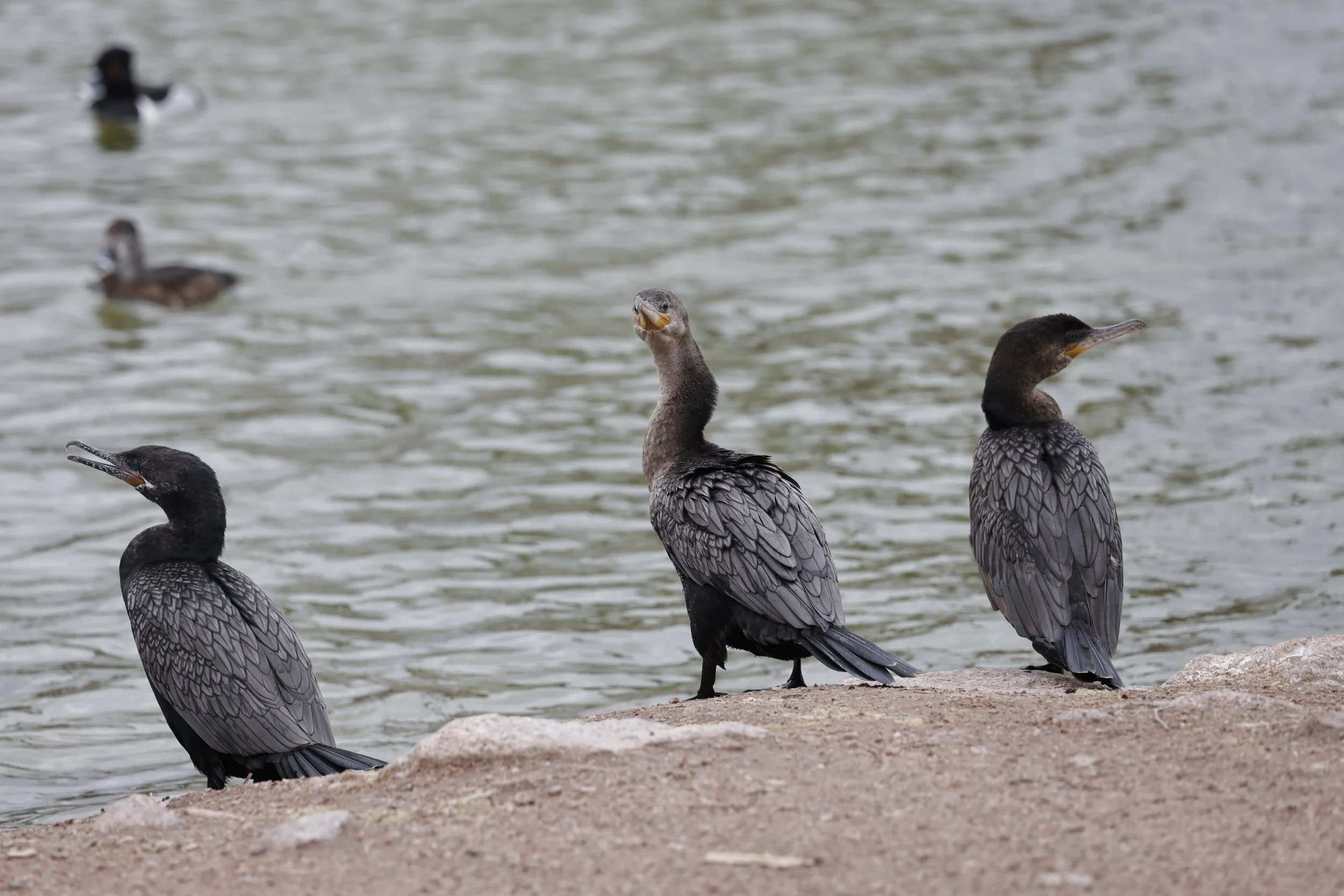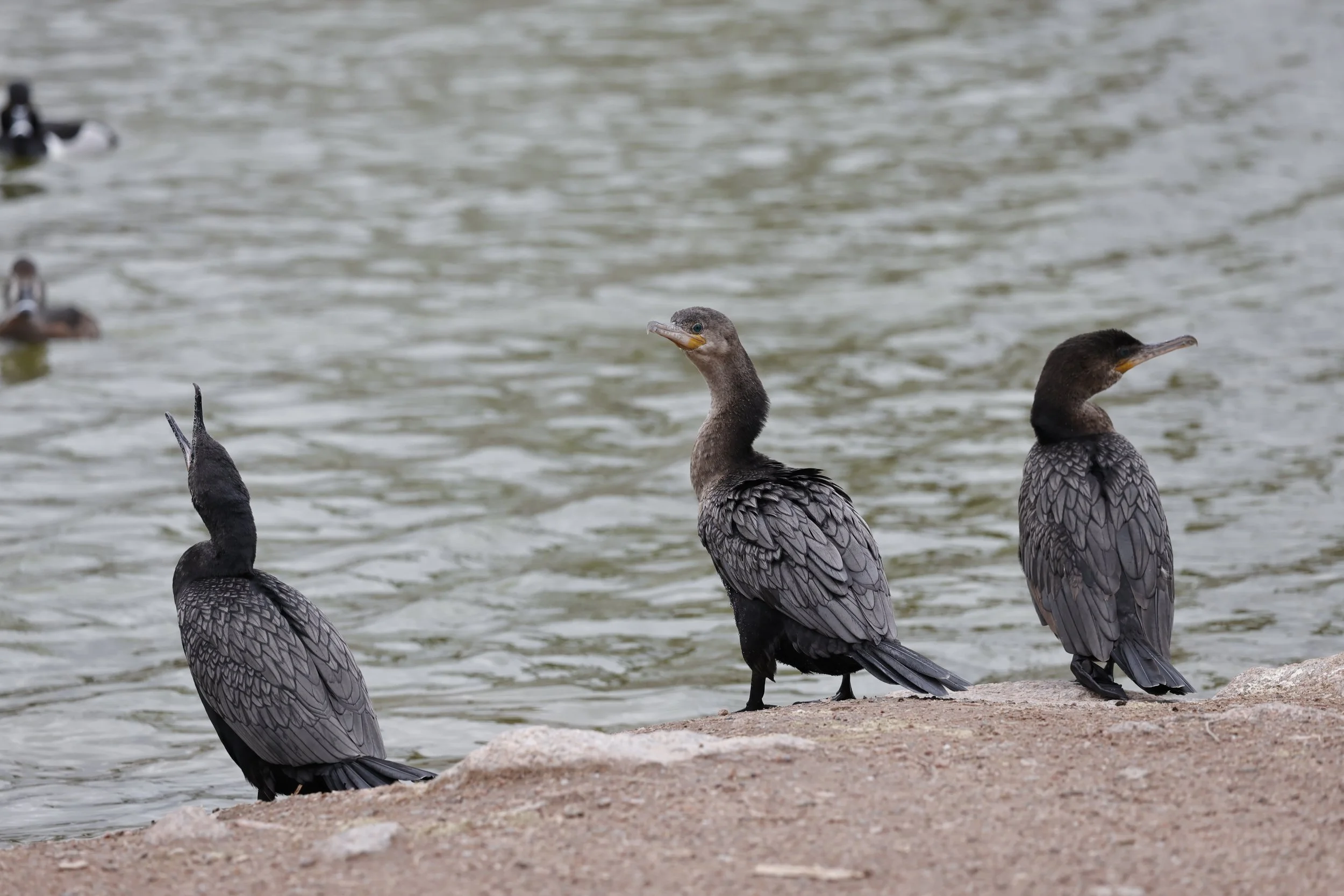 I love how these ones look so villainous, like they have some grand heist planned! These are called Great Cormorants, in these you can tell apart the male and female by the males much darker neck and little tuft of fuzz on the head! Not sure if that’s always the case with the fuzz, may have just been a quirk of this one in particular. They dive below the water to catch fish, its very fun to watch!