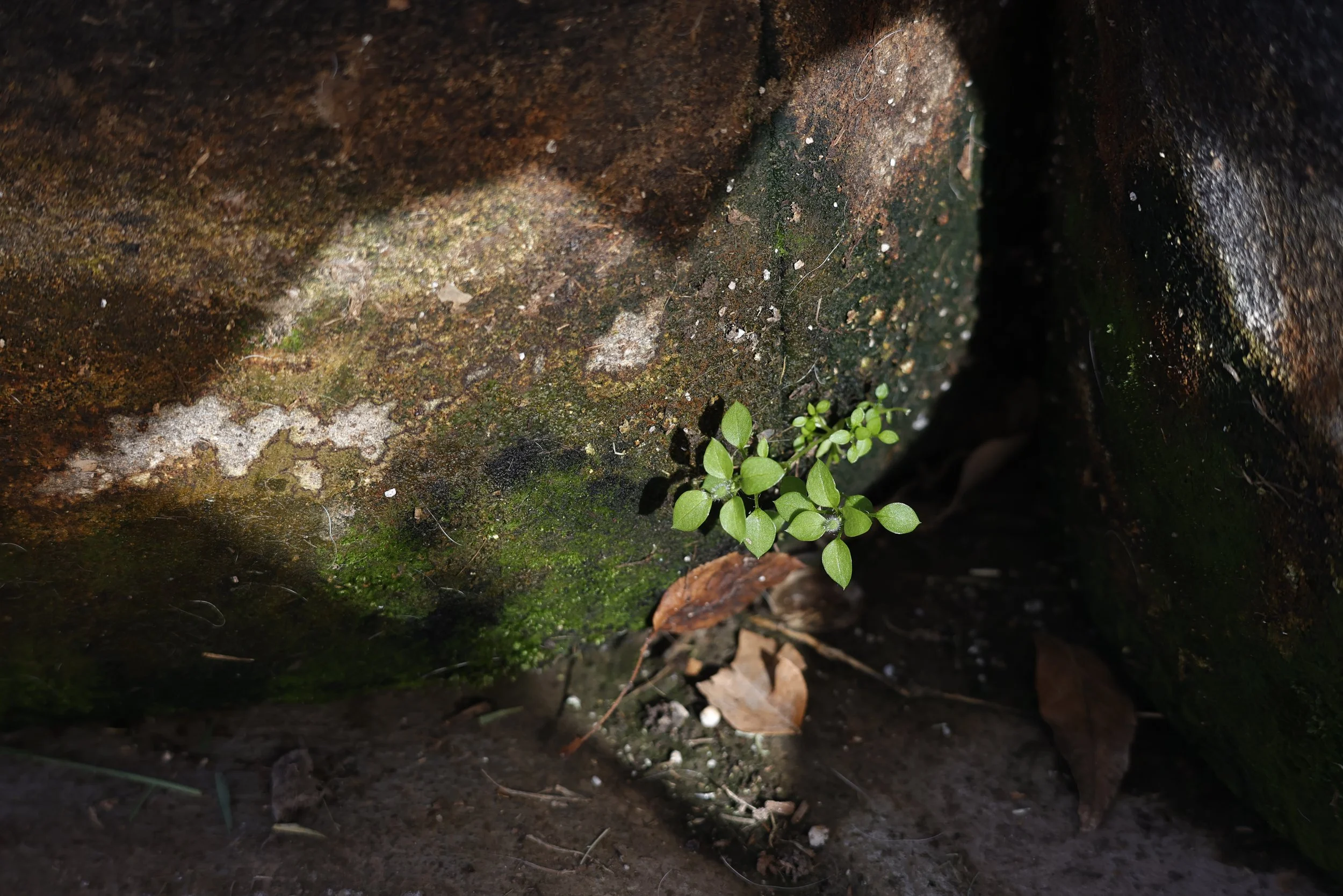 Two little visitors were caught in my little spotlight, Mossy sharing a neat rock and one of the baby hummingbirds trying to make his own heart shape!