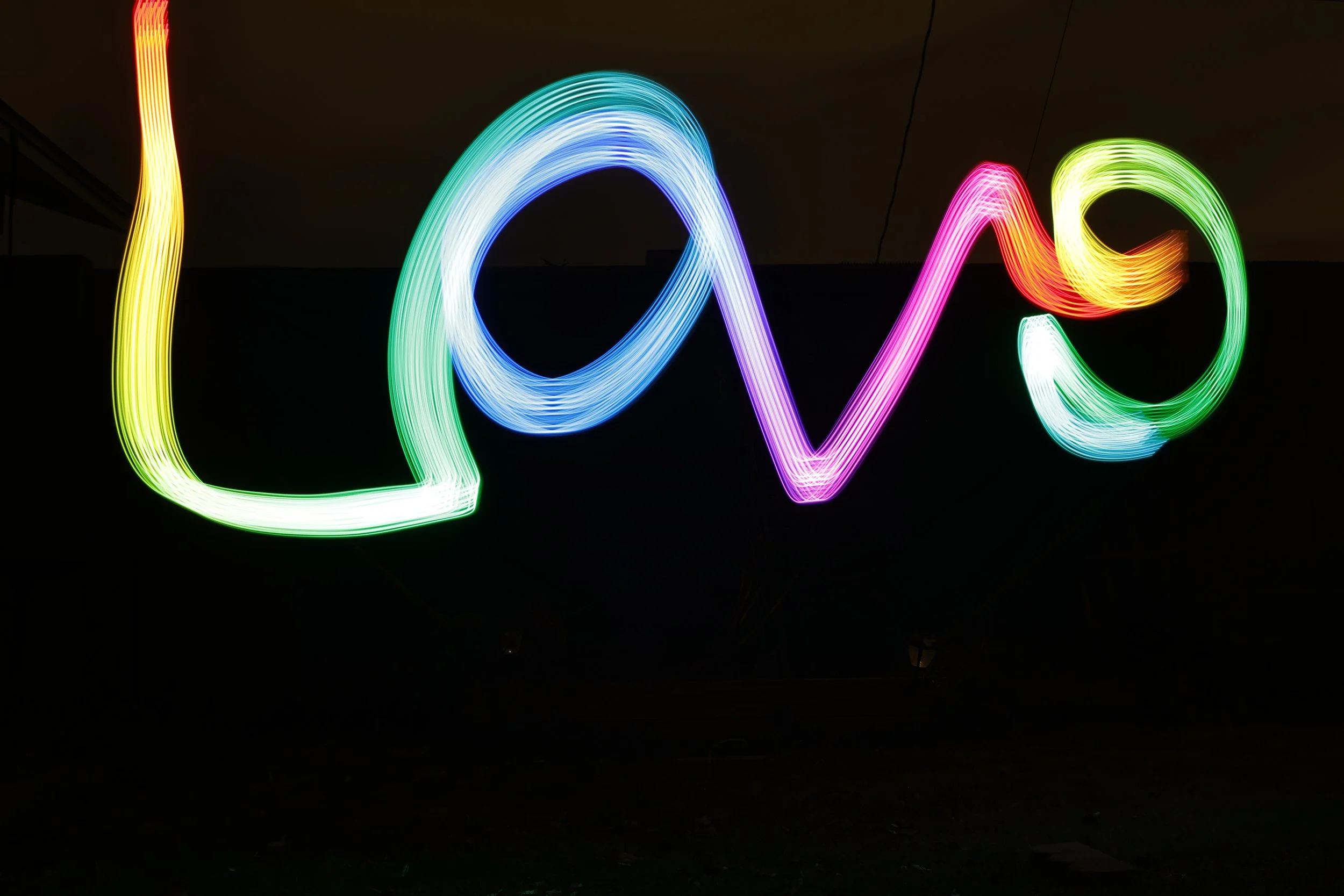 These were taken by moving around a cycling rainbow light, if you follow the trails you can see the color transition in places!