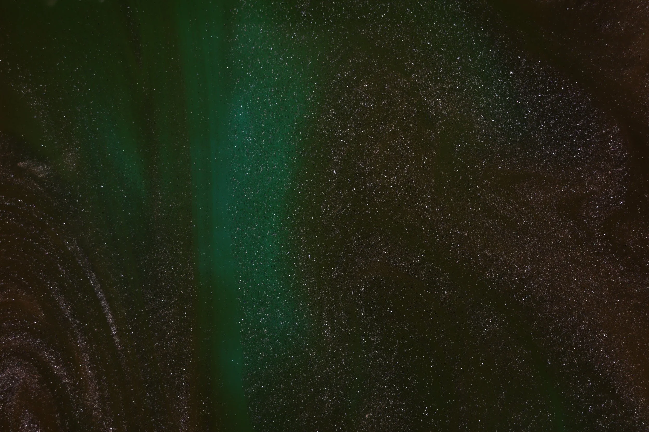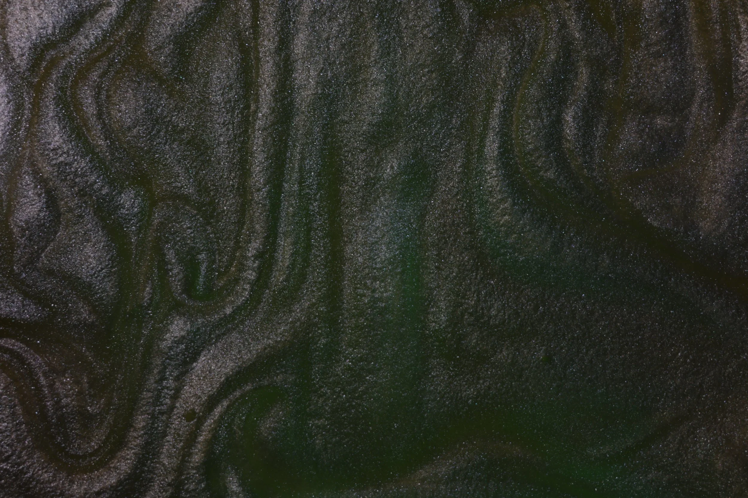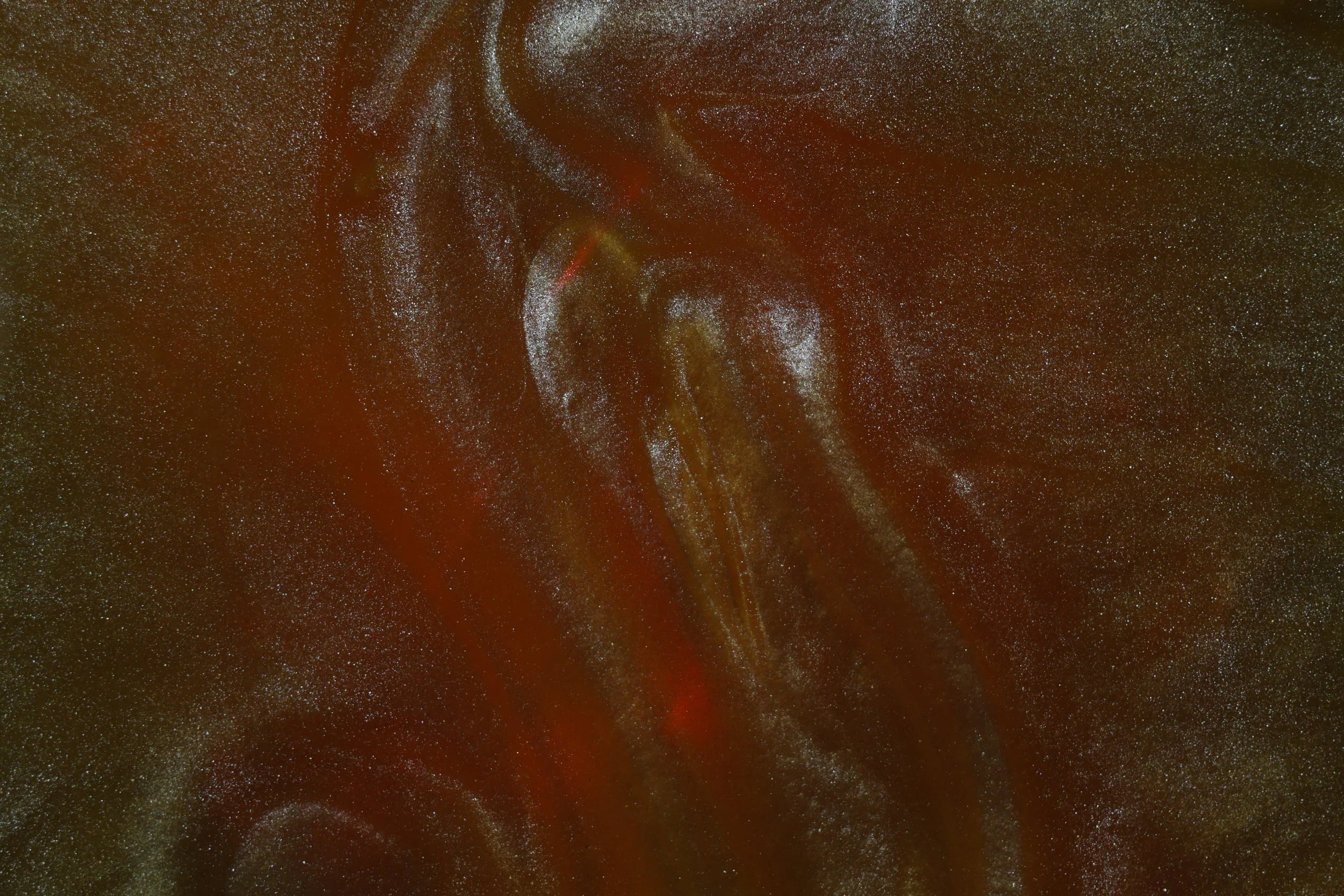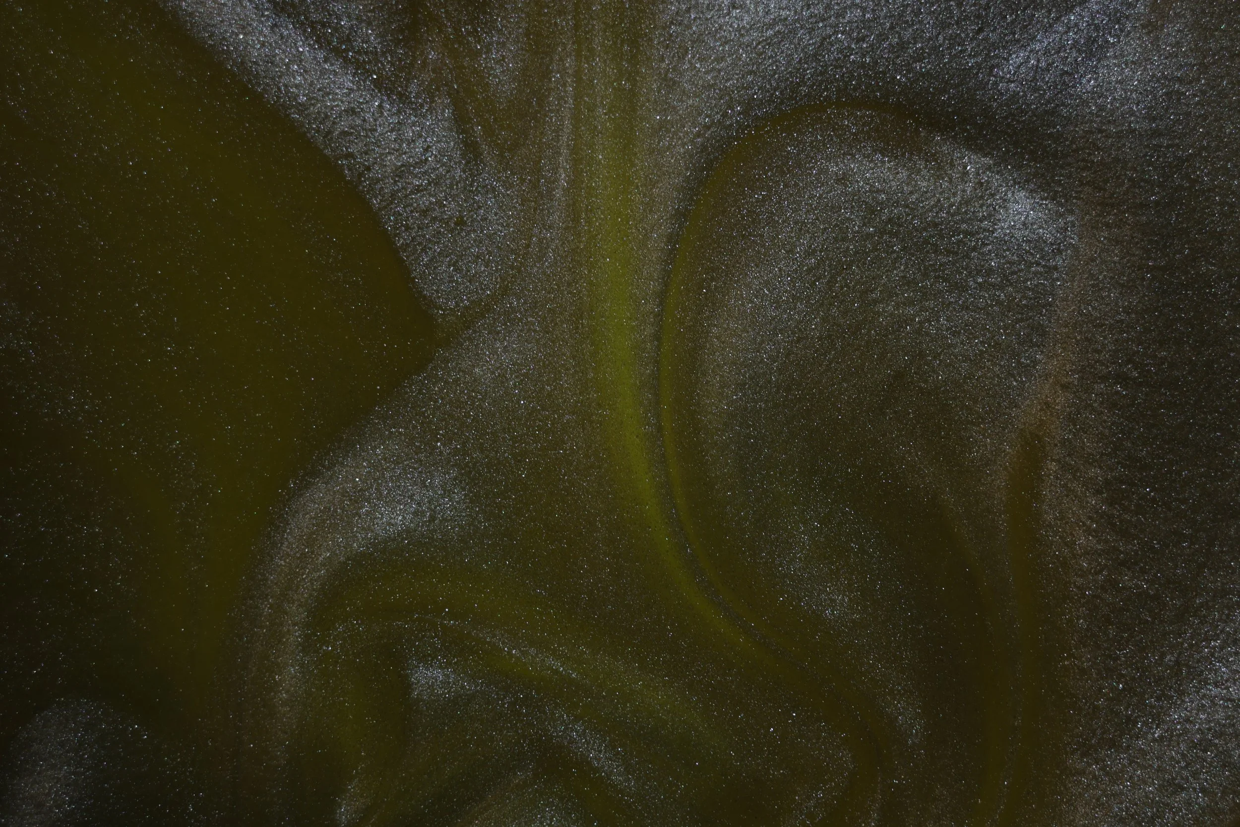 When white mica powder is added to oil it creates a very reflective surface as well as displaying convection patterns.